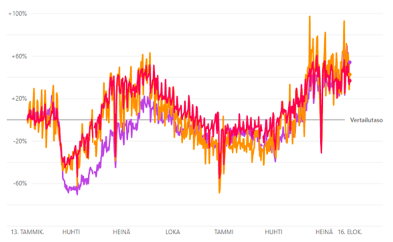 Vielä alkuvuonna koronasäädökset ja suositukset vähensivät ihmisten liikkumista, mutta kesä on ollut datan perusteella hyvin vilkas. Monena viikkona liikkuminen on ollut jopa koronaa edeltävää tasoa vilkkaampaa. Kenties sinäkin olet huomannut kotimaan matkailun kasvattaneen suosiotaan, tämä heijastuu kiistatta myös ulkomainonnan tavoittavuuslukuihin.
